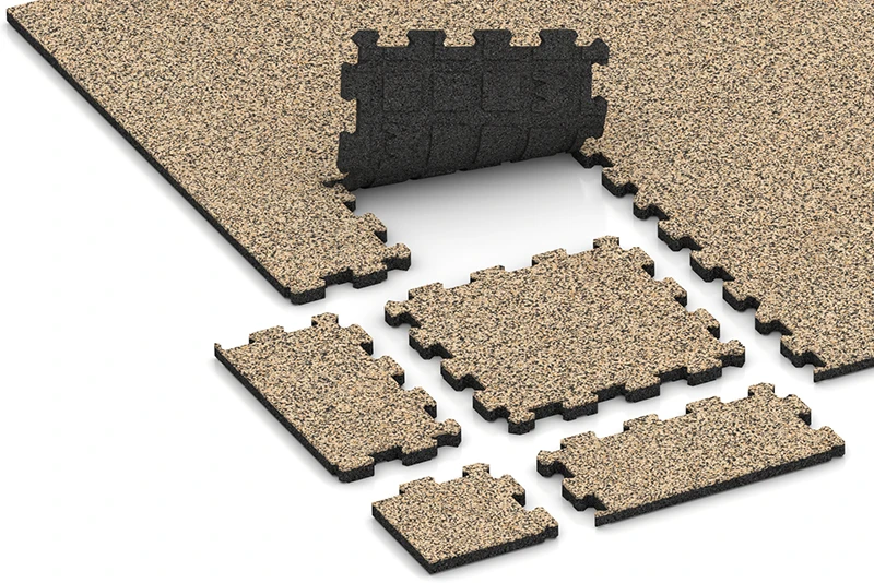 Die meisten WARCO-Klickfliesen werden aus SBR-Gummigranulat hergestellt, das aus recycelten Reifen gewonnen wird. Für bestimmte Farbdesigns verwenden wir auch neu hergestelltes, vollfarbiges EPDM-Gummigranulat.
