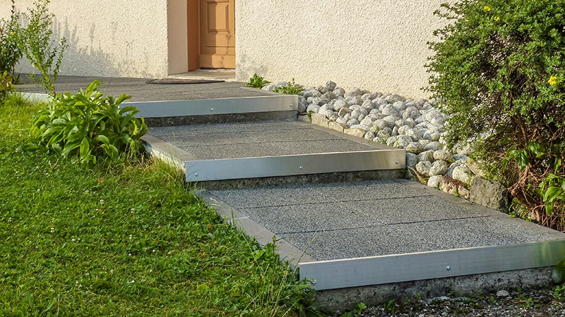 Kiesgitter zur Bodenbefestigung - Randsteine, Palisaden oder Blockstufen zur Gartengestaltung