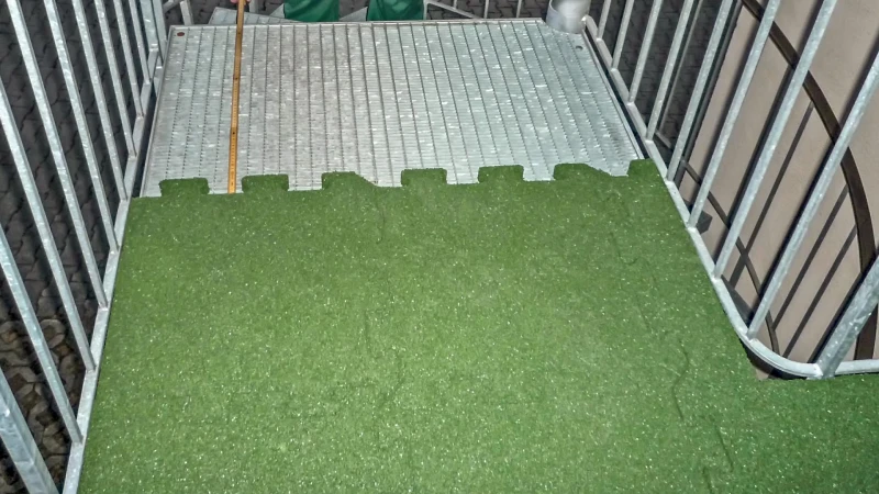 50 × 50 oder 100 × 100 cm, 1,8 cm dick. Puzzleverbindung. Rutschfest, lärmdämmend, witterungsbeständig, pflegeleicht – für Innen- und Außentreppen.