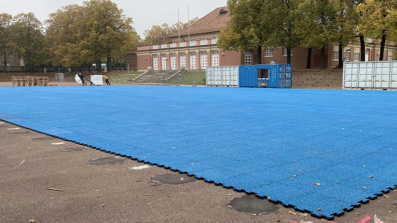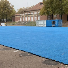 L'installation typique de dalles de jeu de ballon WARCO à fermeture éclair sur une couche de base de grilles en plastique