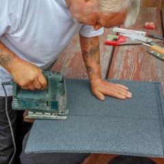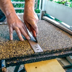 Il n'est pas nécessaire d'être un spécialiste ou un artisan pour couper proprement et précisément des dalles en granulat de caoutchouc, c'est-à-dire des dalles antichoc, de balcon ou de terrasse.