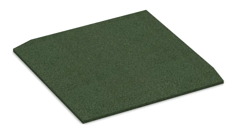 La dalle de coin avec deux côtés inclinés disposés à angle droit est un complément judicieux et compatible avec le système à la plaque de granulat de caoutchouc de type FS. La dalle de coin est utilisée entre deux dalles latérales FI perpendiculaires l'une à l'autre pour former un angle sans risque de trébuchement. Les dalles latérales et les dalles de coin sont utilisées si seulement une partie de la surface du sol est recouverte de dalles en granulat de caoutchouc. La dalle de coin compense en permanence la différence de niveau entre la surface du sol et la surface faite de dalles en caoutchouc et réduit le risque d'accident.