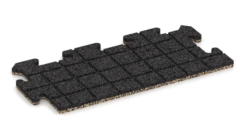 La dalle de rive HD garantit une finition précise et durable le long des bords extérieurs des surfaces posées avec des dalles haute densité. Chaque unité correspond à une demi-dalle puzzle : le côté intérieur est doté de l’emboîtement habituel et s’ajuste parfaitement aux autres dalles, tandis que le côté extérieur forme un bord lisse et droit. Ainsi, l’ensemble de la surface bénéficie d’un encadrement à la fois fonctionnel et esthétiquement harmonieux.