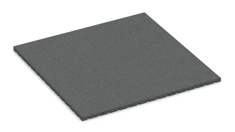 Fabriquée à partir de granulés de caoutchouc recyclés (ELT – pneus en fin de vie) et liés avec du polyuréthane, la dalle possède une surface ouverte, légèrement structurée, antidérapante et agréable au contact. Elle offre une excellente stabilité, une élasticité contrôlée et une isolation thermique au sol. Le matériau atténue efficacement les vibrations et les bruits d’impact tout en étant résistant aux intempéries, perméable aux liquides, stabilisé aux UV et sans danger pour la peau.