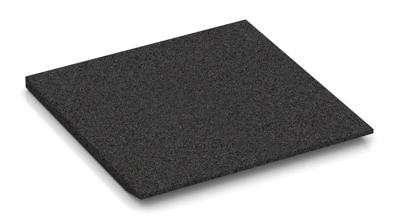 Le caoutchouc est un matériau élastique qui se caractérise par sa capacité à se déformer sous l'effet d'une traction ou d'une compression, puis à retrouver sa forme initiale. Cette propriété rend le caoutchouc particulièrement efficace pour l'absorption des chocs, la réduction des vibrations et l'isolation acoustique contre les bruits d’impact. Dans les produits fabriqués à partir de granulés de caoutchouc liés avec du polyuréthane (PU), le comportement d’amortissement est en outre influencé par le liant élastique, ainsi que par la structure et la densité des plaques.