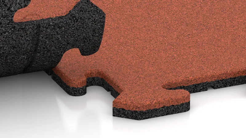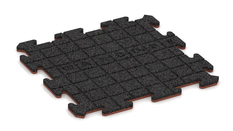 Les dalles sont disponibles aux formats 50 × 50 cm et 100 × 100 cm. Les deux variantes disposent d’un emboîtement puzzle avec chanfrein arrondi, formé avec précision lors du pressage des dalles, ce qui garantit une connexion stable et une finition régulière des joints. Le format 50 × 50 cm est idéal pour les petites surfaces intérieures ou extérieures jusqu’à environ 30 m². Les dalles grand format 100 × 100 cm doivent uniquement être utilisées en intérieur ou sur des surfaces couvertes – comme les gymnases, tentes ou espaces commerciaux. Les deux formats se prêtent également à des installations temporaires ou mobiles, par exemple lors d’événements.