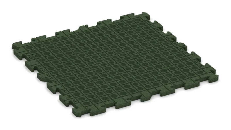 Jede Matte ist mit einer präzise geformten Puzzleverzahnung ausgestattet, die sich leicht und passgenau verbinden lässt. Die umlaufende Fase sorgt dabei für ein sauberes, geordnetes Fugenbild. So entsteht ein stabiler, formschlüssig verbundener Plattenteppich mit hochwertiger Optik.