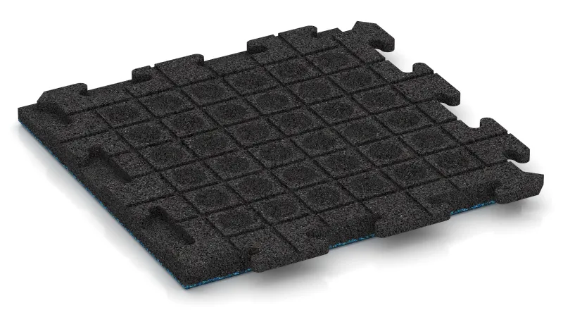 Zwei Plattenseiten verfügen über ein positives Zahnprofil, zwei über ein passendes negatives. Beim Verlegen greifen die Platten von unten formschlüssig ineinander und bilden eine dauerhafte, mechanisch sichere Verbindung. Von oben ergibt sich ein geschlossenes, fugenbündiges Erscheinungsbild mit gleichmäßiger Geometrie, das meist die Form eines klassischen Schachbrettmusters hat.
