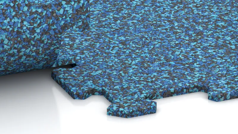 Le Sol de Fitness Compact est disponible aux formats 48,5 × 48,5 cm et 97 × 97 cm, avec des épaisseurs de 0,8 cm et 1,6 cm. Cela permet une utilisation flexible aussi bien pour de petites que de grandes surfaces. La version grand format réduit le nombre de joints et crée une surface plus homogène, tandis que la version plus petite est pratique et facile à poser.